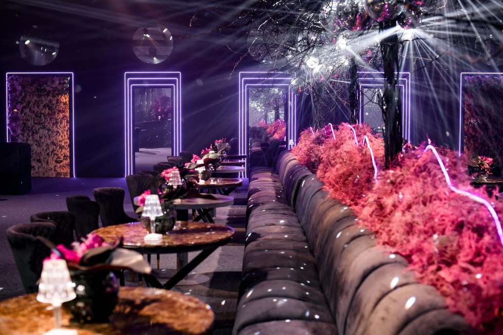 كرات الديسكو اللامعة مع تنسيقات الأزهار، مزيج من المرح والأناقة، هذا هو كل ما كان يدور حوله حفل الخطوبة هذا تحت عنوان الديسكو!