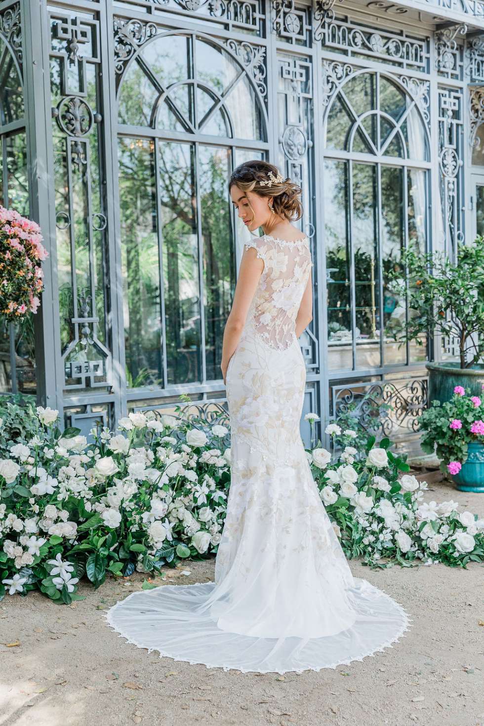 An eternal symbol of beauty and love, flowers are the inspiration for Claire Pettibone’s latest capsule collection. And although flowers for spring may be a cliché, there is a reason for their timeless quality; an allure that cannot be denied. Embroidered on soft tulle, vines trail gracefully along ethereal silhouettes as blossoms bud and bloom. Touches of petal pink, dusty rose and sage green, sky blue and silver, golden buttercup, and of course, classic ivory, adorn these ethereal silhouettes.