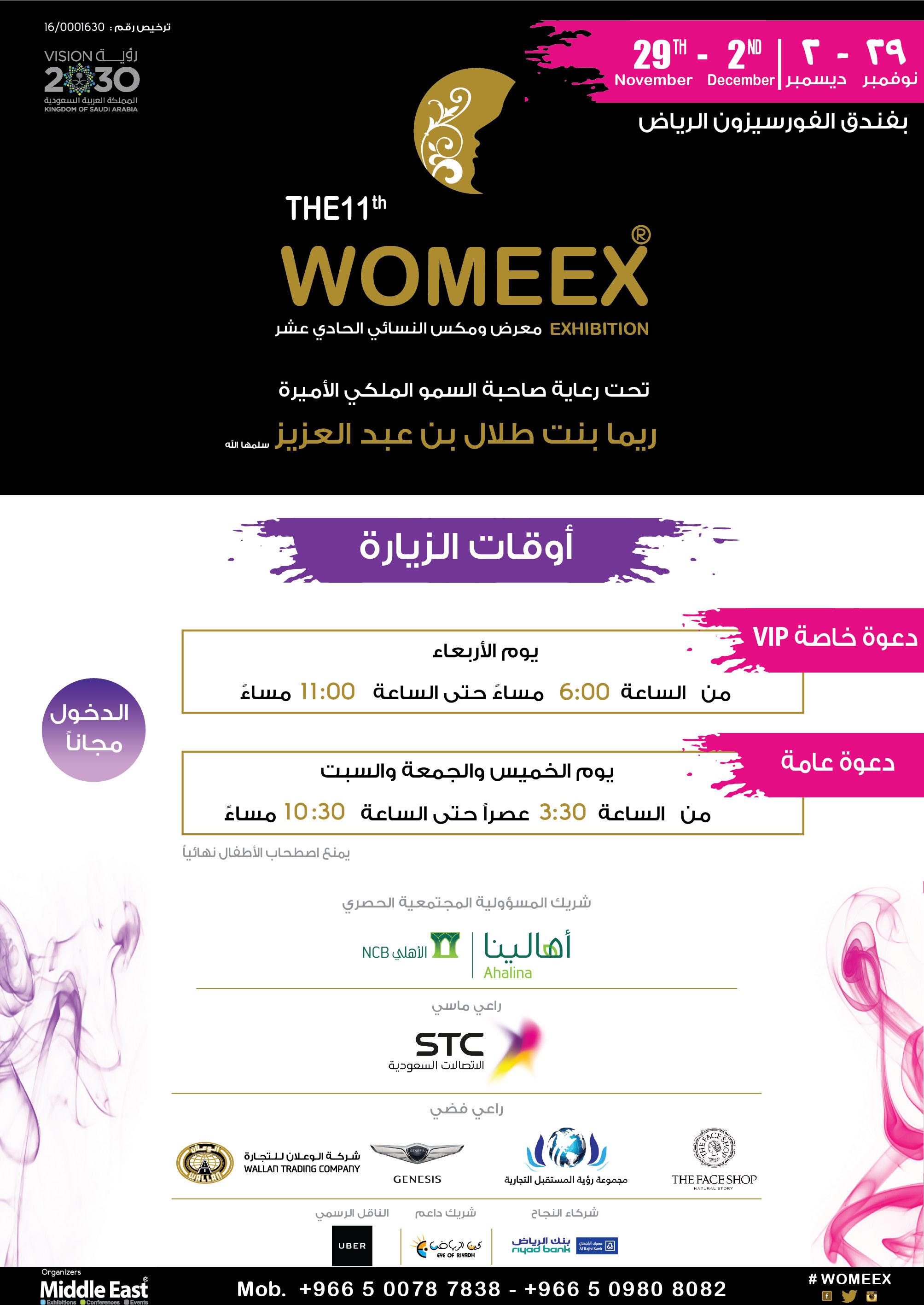 برعاية صاحبة السمو الملكي الأميرة ريما بنت طلال بن عبد العزيز آل سعود حفظها الله .. سينطلق ومكس النسائي الحادي عشر "الأكبر و الأشمل في الشرق الأوسط" في فندق الفورسيزون بالرياض وذلك خلال الفترة من 29 نوفمبر – 02 ديسمبر 2017 بمشاركة عدد كبير من القطاعات النسائية والمهتمة بالشأن النسائي بشكل عام .