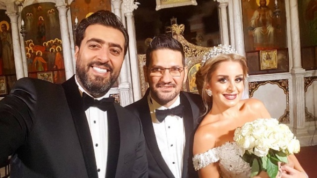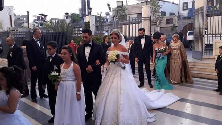 أُقيم الإكليل في الكنيسة المريمية في الشام القديمة وتبعه حفل الزفاف في فندق "داماروز" بحضورالفنان علاء القاسم وعلي سكر والمنتجين نايف وديالا الأحمر والكاتبة ناديا الأحمر والمخرج الليث حجّو والموسيقي رضوان نصري والفنّانين شكران مرتجى وميلاد يوسف وغادة بشور ويزن السيد ورنا ابيض وأيمن عبد السلام.