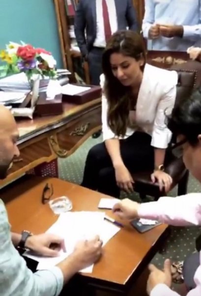 وفي التفاصيل، فقد أقيمت مراسم عقد القران داخل أحد مكاتب التوثيق بحضور شقيقتها ميس حمدان، وظهرت مي في الصور وهي تضع يدها بيد وليد أثناء عقد القران، والابتسامة تملأ وجهيهما.