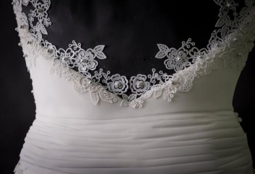 استغرق العمل على هذا الفستان 300 ساعة، ويبلغ ارتفاعه 170 سم وتم استخدام 70 كغ من كريمة الخفق لتزيينه و35 كغ من عجينة السكر كما تم إضافة حبيبات السكر الفضية ليظهر وكأنه مزين بأحجار الكريستال.
