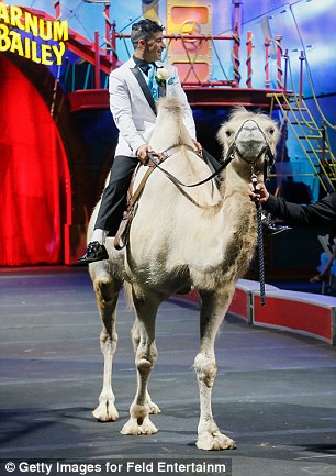 حضر العريس إلى منصة الاستعراض على متن جمل، أما العروس فقد حضرت على متن حصان.