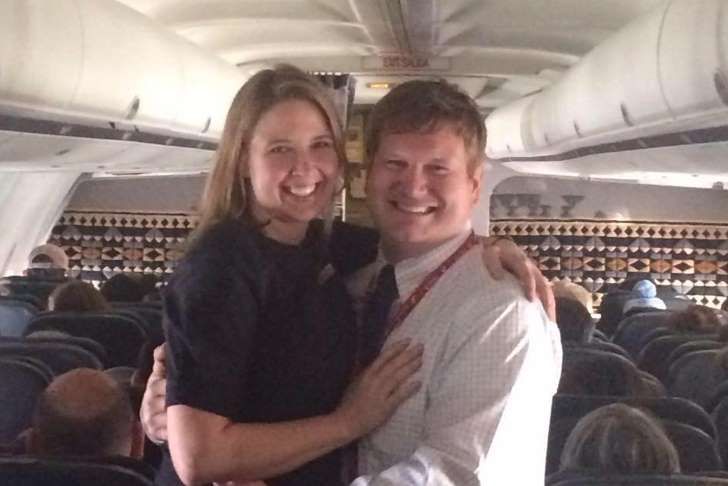وفي التفاصيل أن الطيّار الأميركي إيريك غرين فاجئ حبيبته براندي هولنبيك حين بدأ بالتحدث عبر مكبر الصوت وعلى مسمع من المسافرين، في وقت لم تكن تعرف بأنه متواجد على متن الطائرة.