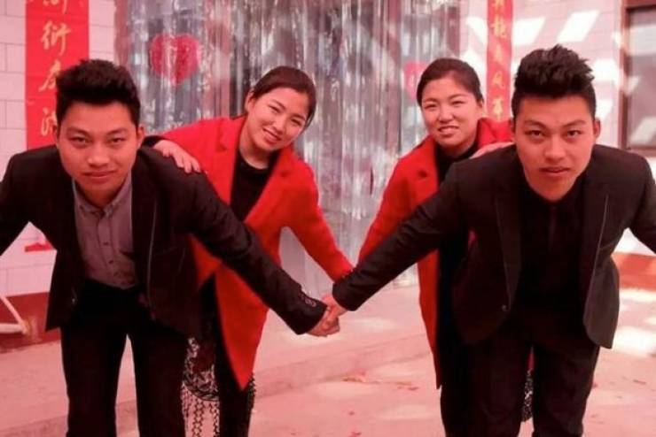 في أغرب قصة ارتباط، تقدم توأم صيني بطلب الزواج من أختين هما توأم أيضاً، وكانت الأمور تسير على ما يرام في مرحلة الخطبة، إلا أن العريسين واجها صعوبة في التعرف على زوجتيهما وتمييزهما عن بعضهما البعض في يوم الزفاف.