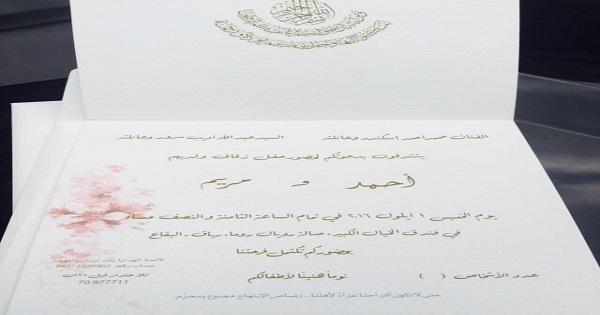 وانتشرت صورة لبطاقة الدعوة التي حملت عبارة تشير إلى أن "رصاص الابتهاج محرم وممنوع".