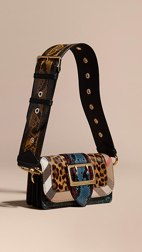 أما بالنسبة للحقائب فقد غلبت النقوش الحيوانية كجلد الأفعى والنمر عليها.