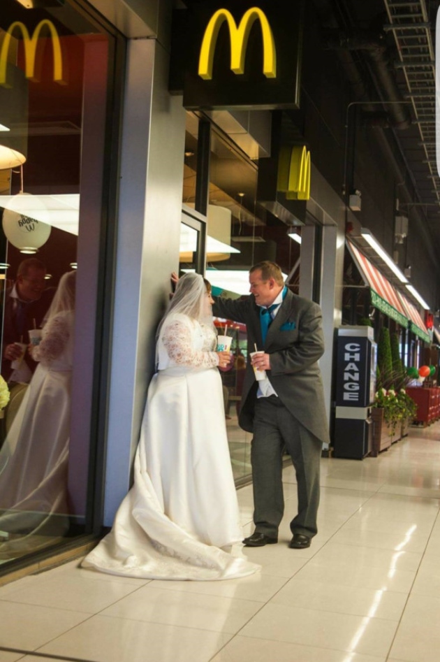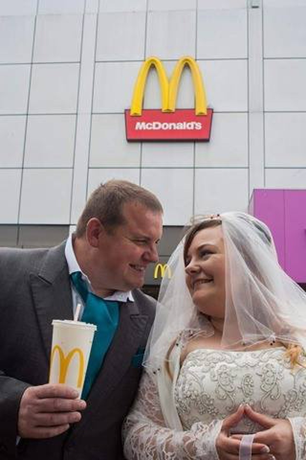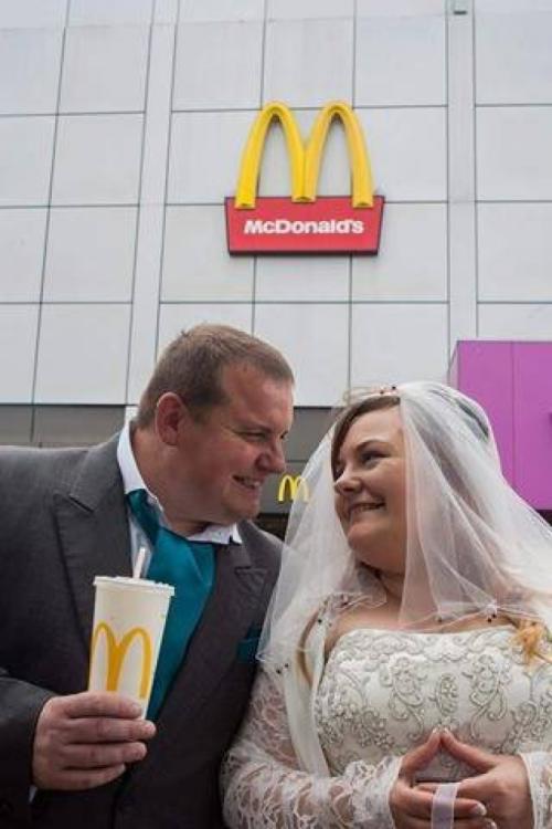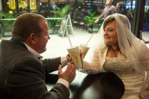 قام عروسان بريطانيان يدعا جوزيف ولويس شابتون بالاحتفال بزواجهما بمطعم الوجبات السريعة ماكدونالدز.