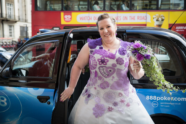 قررت عروس بريطانية تدعى تانيا جينينجز أن تحيك فستان زفافها بنفسها بدلاً من شراء فستان زفاف جاهز من متاجر بيع الفساتين في بريطانيا.