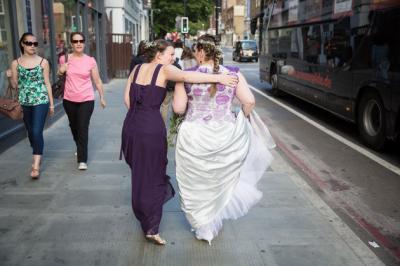 أخبرت تانيا عريسها آندي بالفكرة قبل أن تبدأ بها وشجعها على إتمامها ولكنه لم يرَ الفستان إلا يوم الحفل.