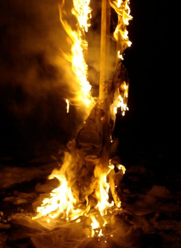 بدأت العروس بالرقص ومن ثم بدأت الأكواب بالانزلاق والسقوط على الأرض، حيث سقط أحد الأكواب على الفستان وأشعله بالنار.