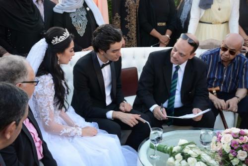 وبدت ملامح الحزن على العروس خلا الحفل بسبب فقدانها لوالدها قبل عدة شهور، ولكن النجم يحيى الفخراني بقي بجانبها وكانت تظهر ملامح الفرح عليه وكأنه يحضر حفل زفاف ابنته!