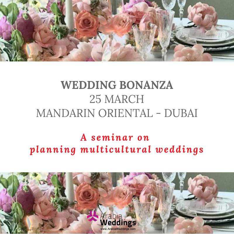 ستقام الندوة التي ستستمر ليوم واحد حول التخطيط لحفلات الزفاف المتعددة الثقافات، في ماندارين أورينتال جميرا، وهو فندق 5 نجوم جديد مذهل على شاطئ البحر في دبي في 25 مارس 2019.