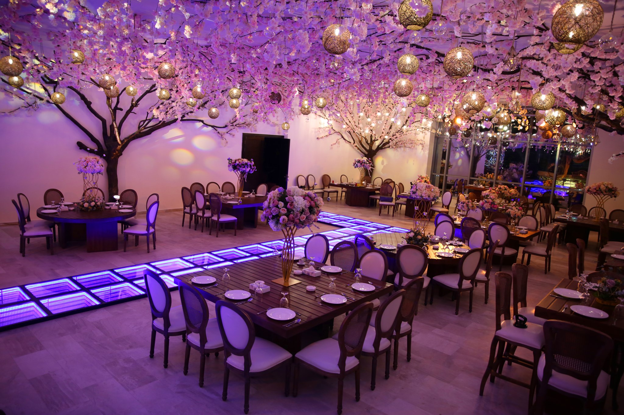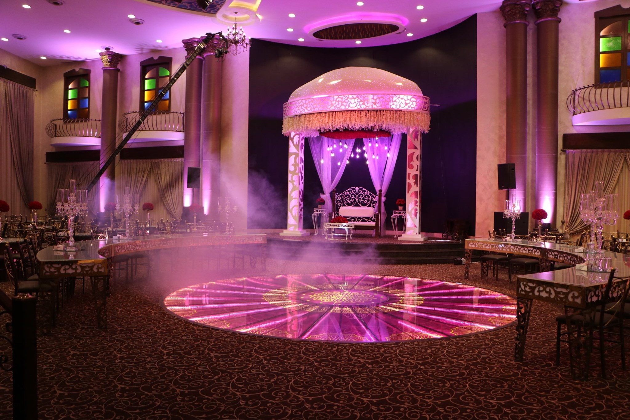 تمتاز القاعة بإضاءة مميزة وحلبة رقص مضيئة وديكوارت عصرية وأنيقة.