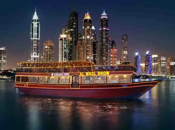 دللا أنفسكما وحبكما للحياة بتناول الطعام في أجواء ريفية على متن سفينة شراعية خشبية، تُعرف باسم الداو التي ستوفر لكما أمسية رائعة. وفقًا لباقة رحلة الداو البحرية الخاصة بك، فإنها تشمل في الغالب بوفيه عشاء مع مرطبات غير محدودة وعروض تقليدية مثل عرض التنورة.