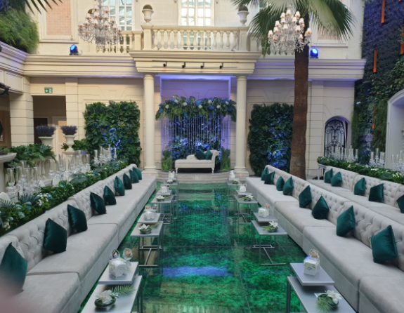 تشمل عروض الزفاف الخاصة بهم كوشة وديكور العرس، وباقة الزفاف، والإضاءة، وكيكة الزفاف، والتصوير الفوتوغرافي والدي جي، بالإضافة إلى قوائم طعام شهية للاختيار من بينها.