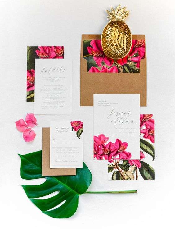 عندما ترسلين دعوات زفاف ذات طابع استوائي للمدعوين، فأنت بالتأكيد تمنحينهم لمحة مسبقة عن حفل زفافك المنتظر.