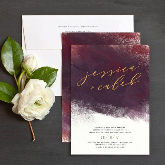 هذا النوع من بطاقات الدعوة هو لطيف ومرح للغاية. اللون الأرجواني هو لون جميل وأنيق للغاية. وإذا كان ثيم حفل الزفاف من نفس اللون، فإن هذا التنسيق سيكون مثالياً. كما يمكن تزيين الواجهة الخارجية للدعوة بأحجار براقة ويمكن أن تكون مرصعة بالزركون الأسود أو الأبيض. سيكون المظهر العام للدعوة مثاليًا يعكس عن حفل زفاف أنيق ومميز. بعض أوراق الخزامى، أو دعوة معطرة برائحة الخزامى هي فكرة مميزة إذا كنت تريدين لبطاقة الدعوة أن تبرز حقاً.