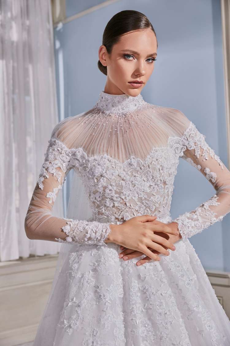 تتميز مجموعة فساتين الزفاف بتصميمات بيضاء بالكامل مع كريستالات لامعة وفساتين بقصّة الأميرة مصنوعة من أرق الأقمشة. كما لم تخلو المجموعة أيضًا من القطع العلوية والياقات التي تخطف الأنفاس.