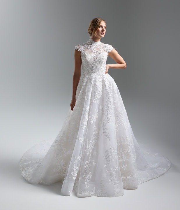 صمم لازارو الفساتين لتأسر وتخطف الأنظار وتثير إعجاب العرائس، حيث يبتكر فساتين منفوشة مزركشة وفساتين منحوتة تتسع تدريجيا من الأسفل. تتلألأ الفساتين ذات الأقمشة الفاخرة، حيث تجسد الزهور العصرية ذات الزخارف النباتية حب العروس للرومانسية.