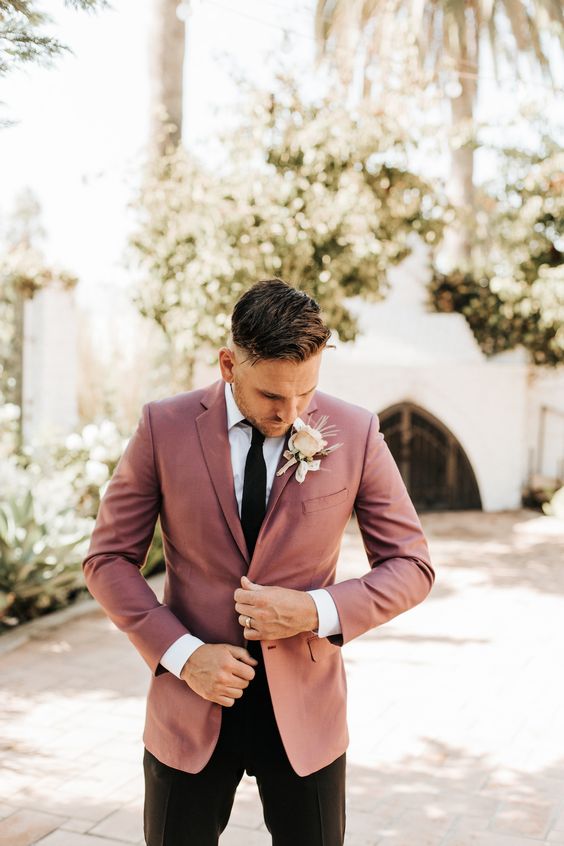 عندما تسمع أو تفكر في أزياء اشبين العريس، سيتبادر إلى ذهنك على الفور بدلات باللون الأسود والأبيض والرمادي. هذه الألوان هي خيارات شائعة لاشبين العريس، ولكنها ليست الألوان الوحيدة المتاحة التي يمكنك الاختيار من بينها. يمكنك إنشاء مظهر أنيق من خلال التفكير خارج الصندوق والبدء في مشاهدة بدلات بألوان مختلفة. من بين أكثر مجموعات الألوان الفريدة التي يمكنك تجربتها لبدلتك هي العنابي والبني الفاتح أو الوردي والكاكي. يمكنك أيضًا الحصول على إطلالة فريدة من نوعها من خلال اختيار بدلات بألوان أكثر جرأة، مثل التركواز أو البنفسجي.