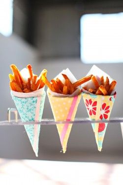 البطاطا المقلية في مناديل مخروطية الشكل