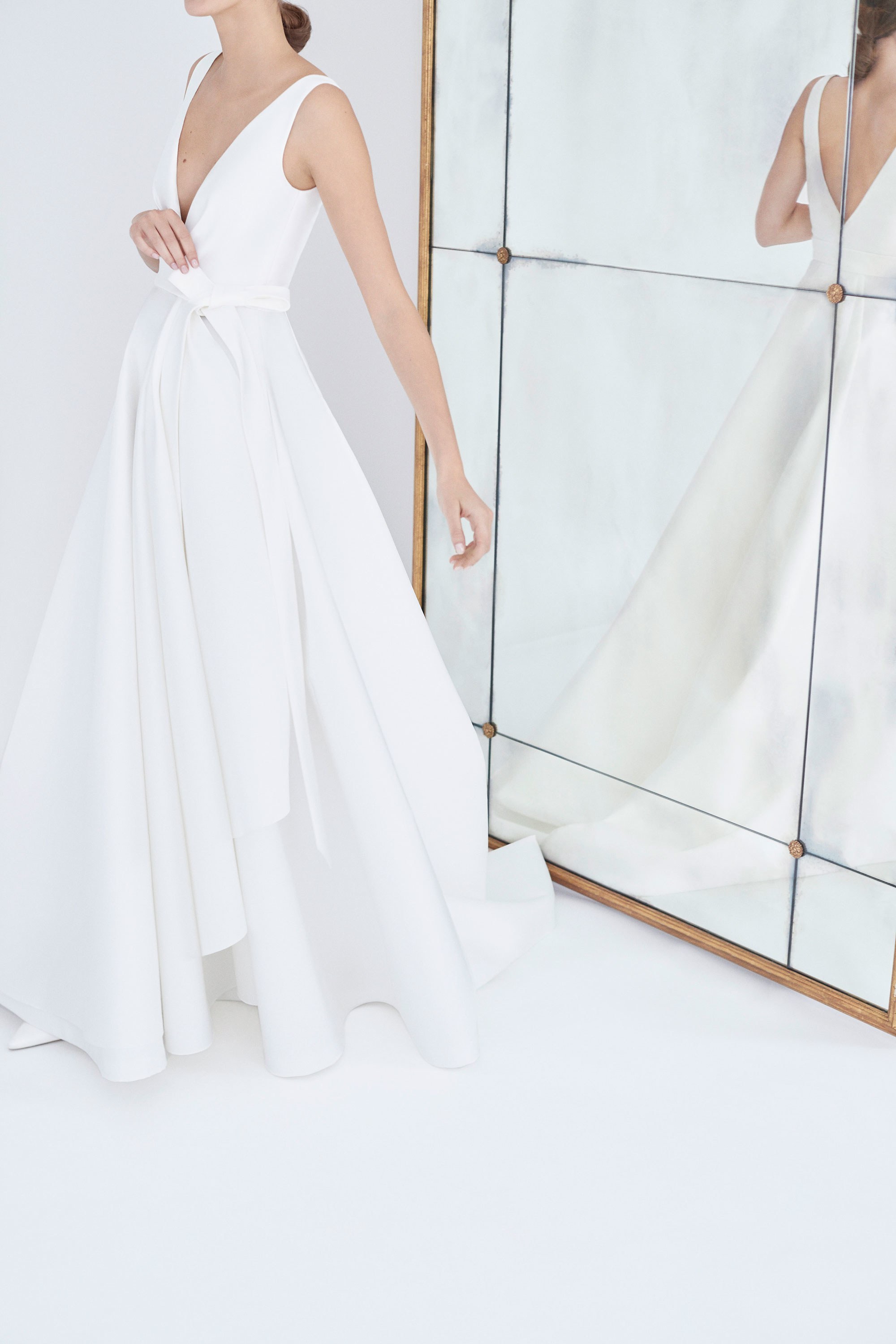 كارولينا هيريرا: على الرغم من أن فساتين اعراس كارولينا هيريرا لخريف 2018 قد تكون بسيطة، ولكنها أيضاً براقة ومفعمة بالأنوثة. في مجموعة فساتين عام 2018، استخدمت كارولينا هيريرا الكثير من لمسات الأزهار، التي كانت بدرجات اللون الأبيض على فساتين الزفاف البيضاء، وبألوان مختلفة كذلك.