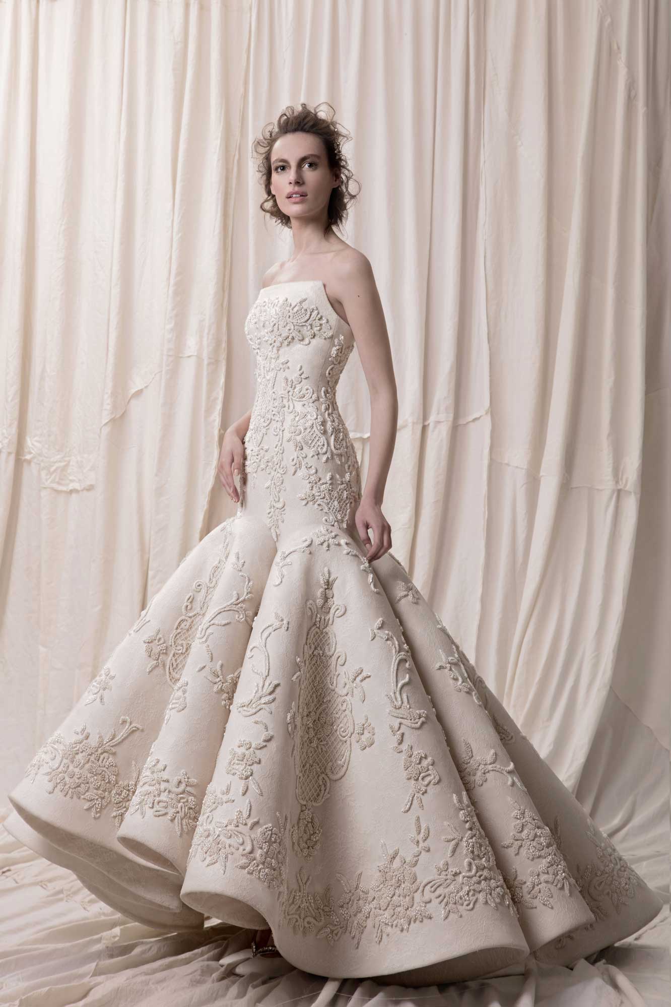 إيلي صعب: كما عوّدنا دائماً، سحر المصمم اللبناني العالمي ايلي صعب الحضور بمجموعة فساتين الزفاف لعام 2018، وتميزت المجموعة بكونها ساحرة. كما ضمت المجموعة تصاميم عصرية، غنية بالتطريز الأنيق والعصري، وكأن كل فستان زفاف هو عبارة عن قطعة فنية.