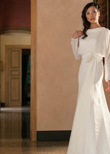 اختارت المصممة أفضل الأقمشة التقليدية لخلق مجموعة فساتين الزفاف هذه البسيطة والفريدة من نوعها.