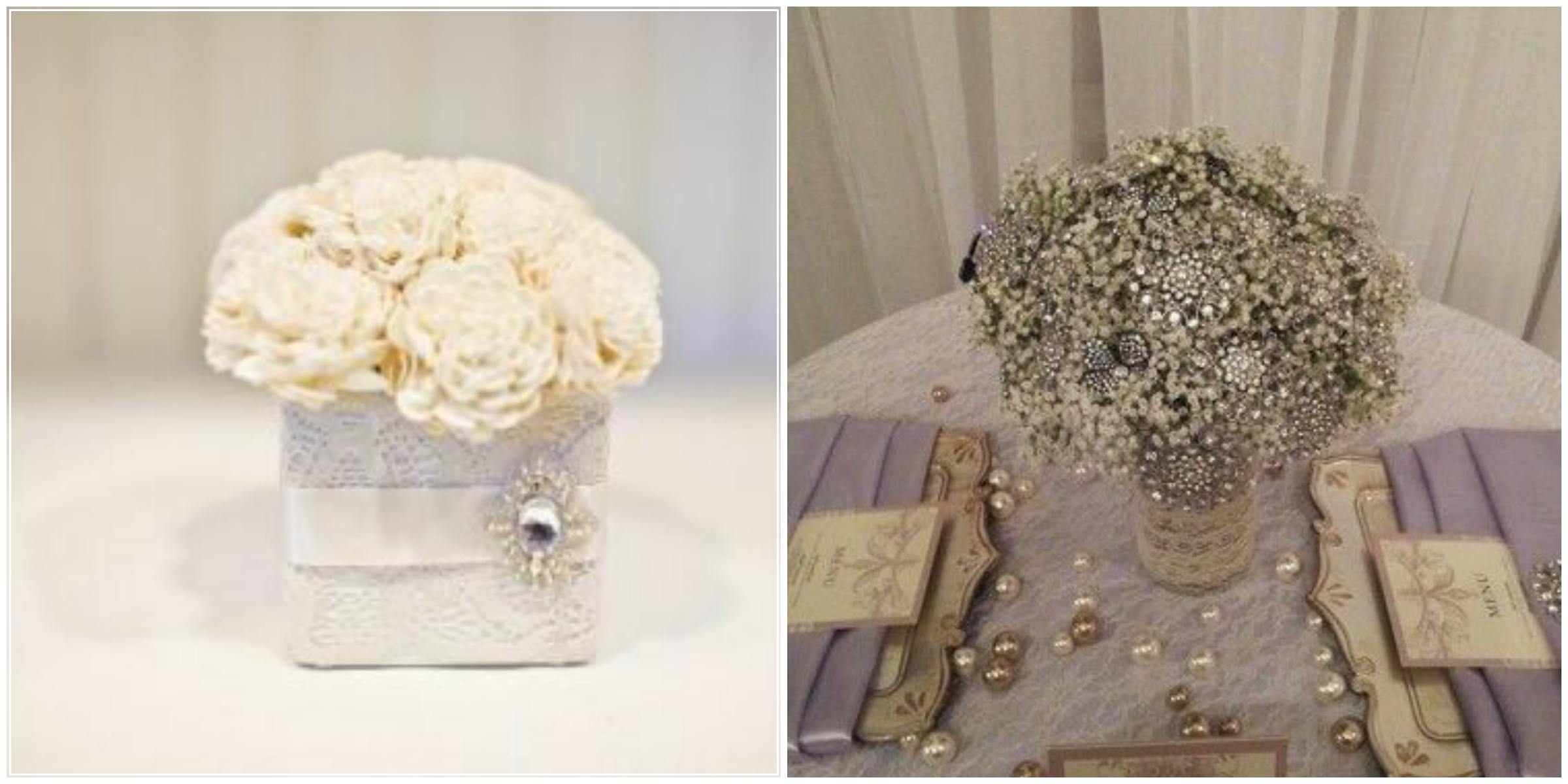 أضيفي البروش لزينة الطاولة (السنتربيس)، أو اصنعي زينة كاملة من البروشات.