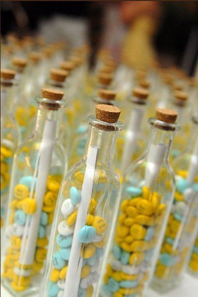 يمكنك اختيار حجم وشكل الزجاجات (القناني) التي تعجبك، وملؤها بما تريدين وتقديمها كهدايا لضيوف الزفاف!