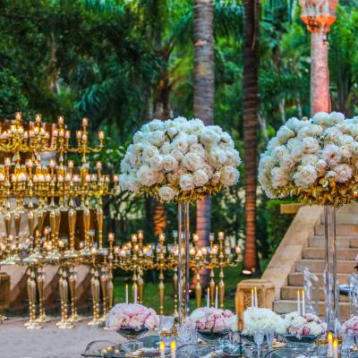 This stunning wedding took place at La Résidence Des Pins in Beirut, Lebanon - the residence of the French Ambassador to Lebanon. The Residence dates back to the early 1900s during the times of the Ottoman Empire, making it the ideal venue for a New Renaissance Theme, a royal and grand theme where the medieval ages come back to life. So Majeda Kassir Bisharat and the amazing team of MY Event Design wanted to implement an ambience that complements the venue.