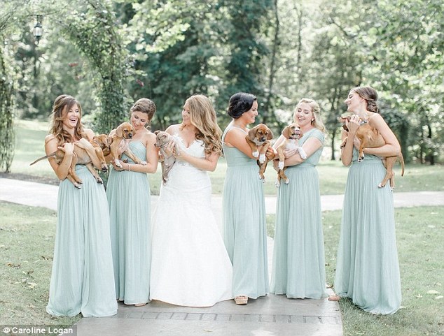 'When the bride, Sarah, first came to me with this idea I was thrilled!' explains wedding photographer Caroline Logan to Daily Mail Online. 'Being a puppy lover myself I was extra excited for Matt & Sarah's day to arrive.'