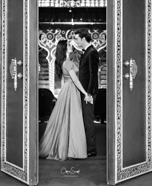 Following their engagement announcement on stage, the couple had an intimate party to celebrate their engagement, and Heba Magdi wore a beautiful pink dress, designed by Rama Abd Al Ghani.