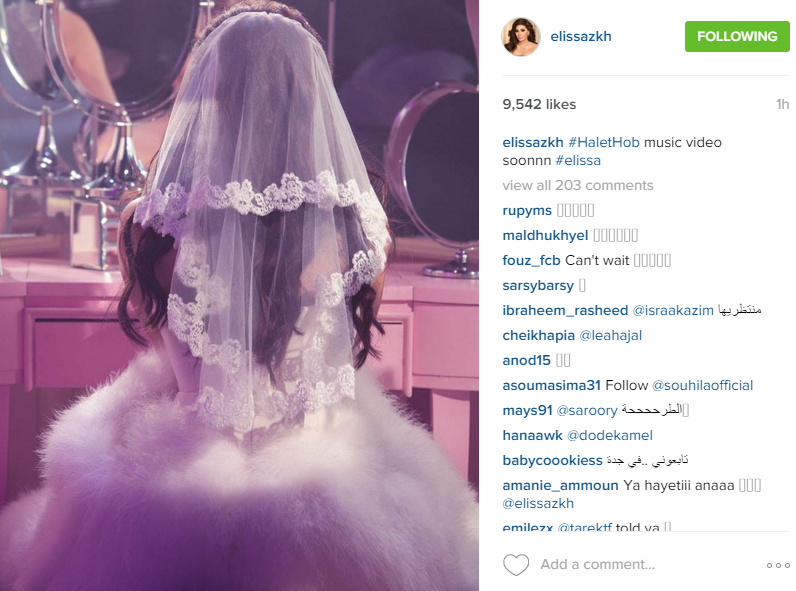 The picture which shows Elissa in a wedding dress and veil, is from her new music video "Halet Hob".