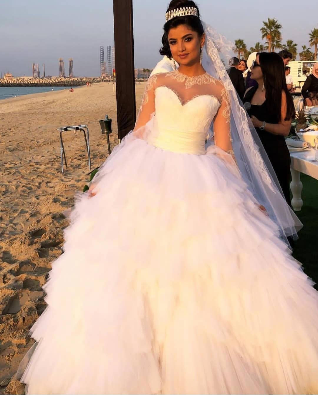 Ola changed into a second wedding dress for the party designed by Lebanese designer Reem Kachmar, which was a low-high wedding dress perfect for the party.