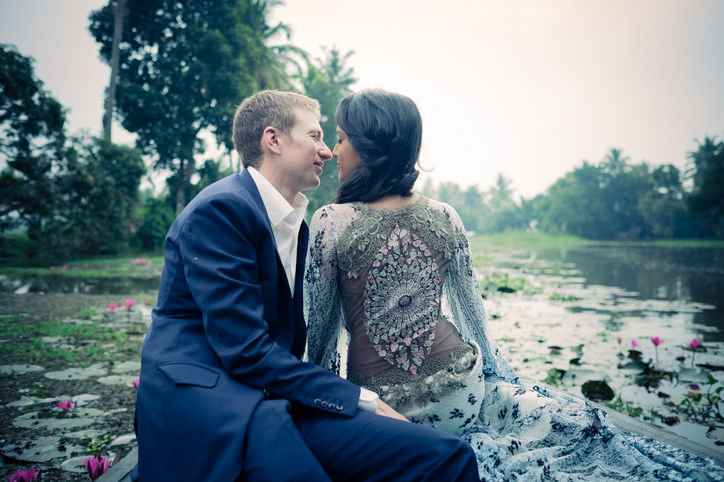 The couple invited their guests for a December wedding weekend at the Kumarakom Lake Resort, where they tied the knot on a boat—and Sylvia stunned in a blue and embroidered Claire Pettibone gown that will make you swoon.