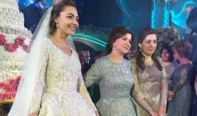 The bride was bedecked with diamonds and wore a custom-beaded Elie Saab gown. The nine-tiered wedding cake was topped with a Muslim crescent moon and star.
