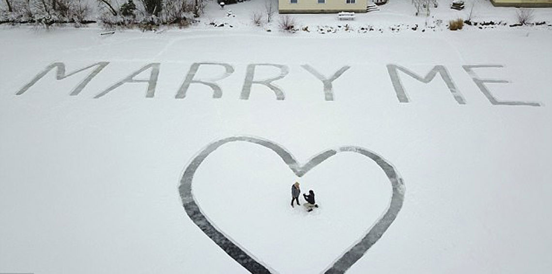 An aviation student in northern Minnesota pulled off a sky-high marriage proposal by writing “Marry Me” in the snow, then flying his long-time girlfriend over his work.