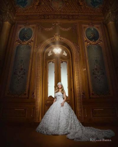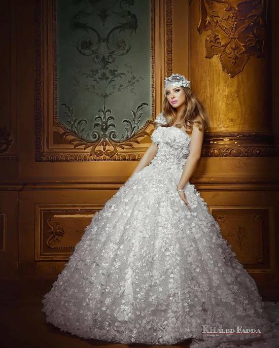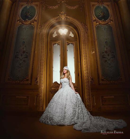 Reem was photographed wearing a wedding dress designed by Egyptian fashion designer Samah Mahran.