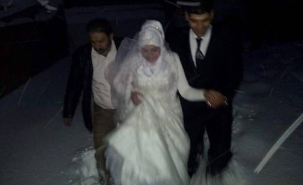 The snow storm made it impossible for cars to move and transport the bride and groom. But this did not stop the couple from reaching their wedding venue.