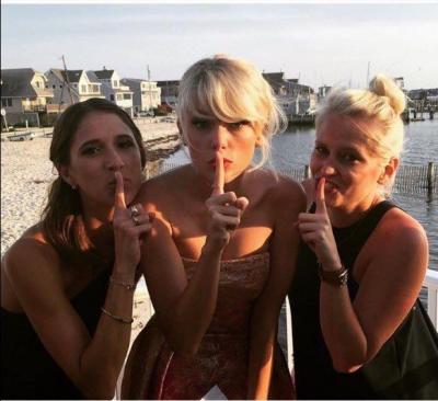 Swift also painted a water colour card for the couple, featuring the Blank Space lyric "so it's gonna be forever", and stuck around to pose for photos with the wedding party.