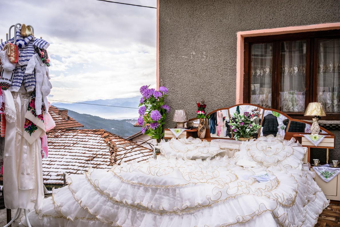 Ribnovo Pomak weddings last for two full days, spanning all of Saturday and Sunday. Every winter weekend in Ribnovo, you can see people dancing, eating, and building elaborate bedrooms to celebrate new brides and grooms.