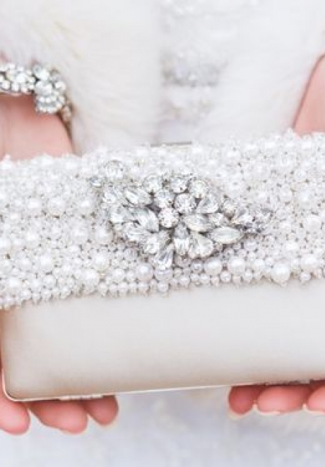 A beautiful clutch with embellishments would add a unique touch to your bridal look, there are so many different styles, sizes, and colors when it comes to bridal clutch bags, so make sure to find one that suits your taste and your wedding dress.