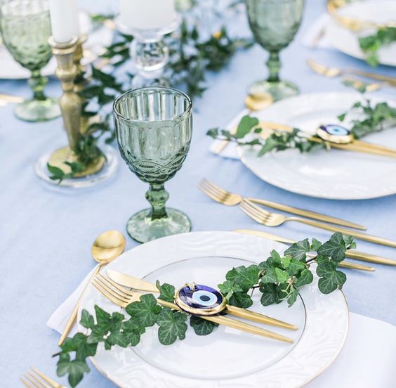 For a pretty touch have Evil Eye charms placed on each plate a name place card or as a wedding favor.