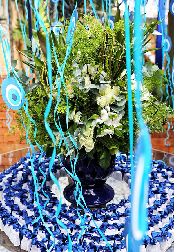 In many Turkish and Greek islands you can find Evil Eye charms hanging from the trees or ceilings in restaurants and cafes, so why not have some Evil Eye charms hanged above a certain area at your wedding or over your buffet for a unique look.