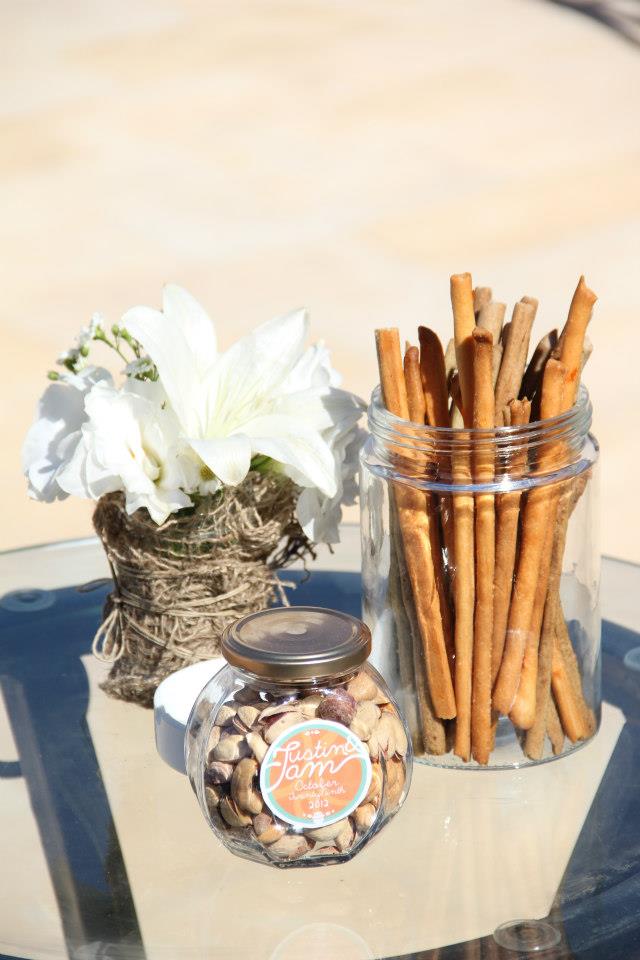 As I mentioned, the family wedding was very traditional, and very classic. It was all white and gold, with white flowers, crystals and candles as centerpieces. My theme for the wedding party was actually taken from an article on here where I used jars in almost all the elements of the party, and it turned out lovely, thank God. We had flower arrangements in jars, nuts, bread sticks and cookies and jars, and the giveaways were jam jars as well.