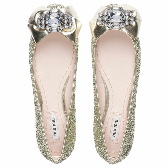 Gold embellished flats by Miu Miu.