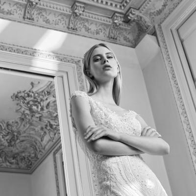 Re-enacting nature through gleaming floral beading, playful bows recalling butterflies, cascading layers, unconventional movements and irregular shapes, all topped by the magic of a sparkling touch, the wedding dresses are made for the contemporary bride looking to embrace her young and free style.