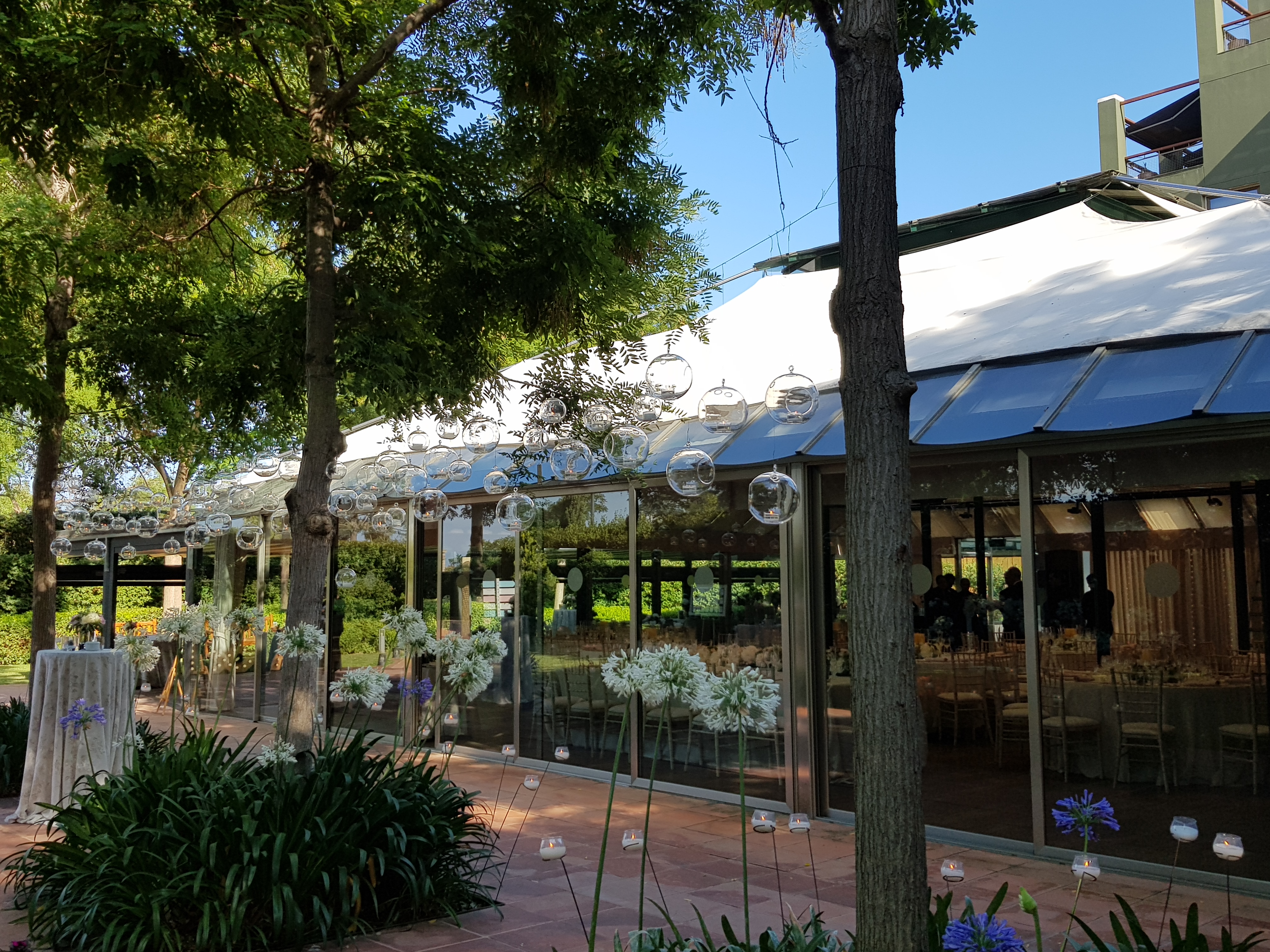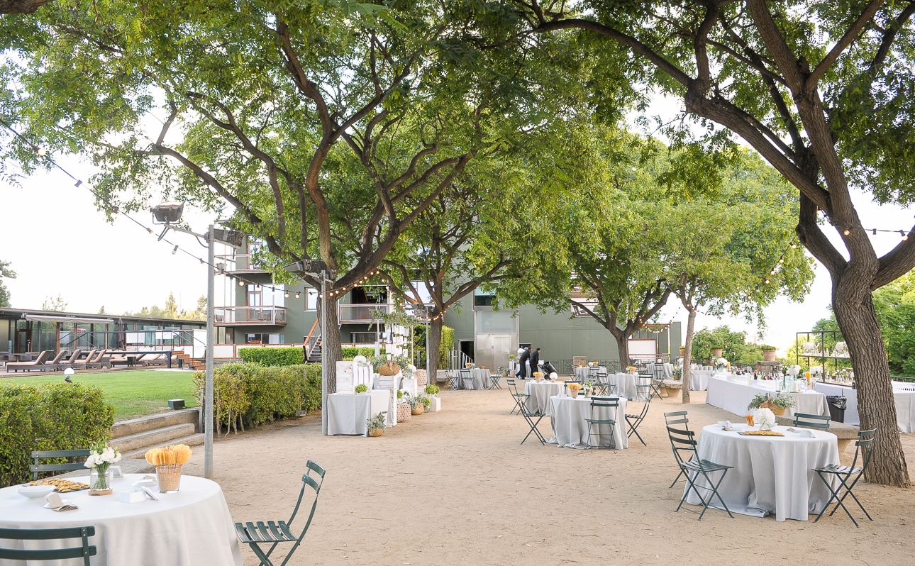 For events of more than 200 guests, it is necessary to hire the Azulete room as plan B for the cocktail or welcome drinks, in case of bad weather. Located in a private, landscaped area, its kiosk-type structure was inspired by a Barcelona restaurant of the twenties, from which it takes its name: Azulete. The Azulete is an ample, glass-walled space fully integrated into a beautiful garden, with spacious porches that extend the space into the open air.